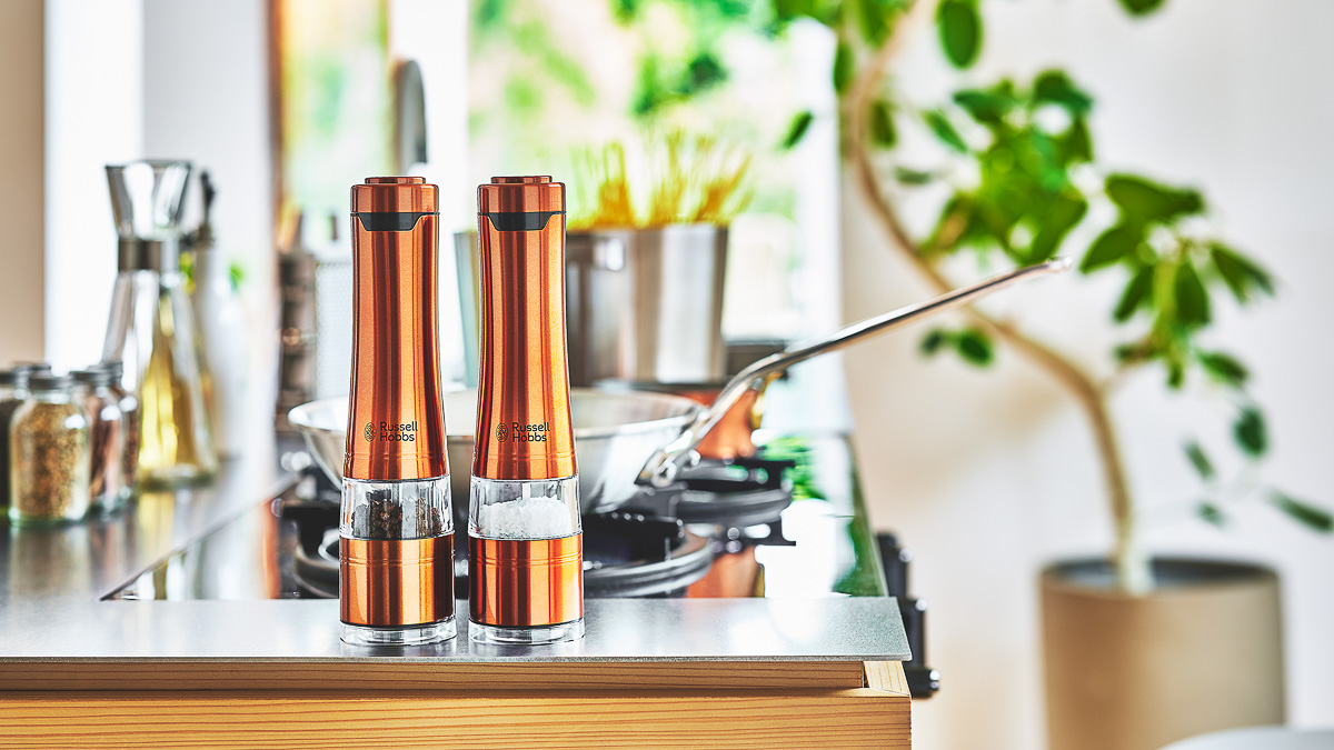 電気ケトルでおなじみのRussell Hobbs(ラッセル ホブス)から、人気の「電動ミル ソルト&ペッパー」に新色「電動ミル ソルト&ペッパー ロイヤルブロンズ」(7700円)が2022年1月28日に数量限定で登場します。