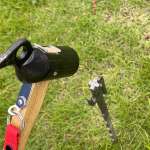 さらに、四角い軸と独特な形状をした抜け止めが、ガイロープからの荷重を浮けて地中でくいつき、強力な固定力を発揮します。なおペグを抜く時は、抜け止めの形状が緩むようにガイロープから荷重と反対の方向へハンマーを打つと、隙間ができ、抜きやすくなります。