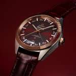 サンブラッシュ仕上げの色鮮やかなバーガンディダイアルを搭載した「バーガンディダイアル」は、ステンレススティールケースを採用。