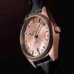 また、インデックスにはセドナゴールドの枠にブラックオニキスをセットし、さらにオメガ初の試みとして時針と分針にもオニキスを採用したプレミアムなモデルです。ストラップは、光沢のあるブラックアリゲーター。ムーブメントは「オメガ コーアクシャル マスター クロノメーター アニュアル カレンダー キャリバー8923」を搭載しています。