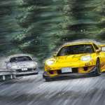 そして、もうひとつがプロジェクトD編の中期、茨城・パープルシャドウとバトルした「頭文字D 高橋啓介 FD3S RX-7 プロジェクトD 第28巻仕様」です。埼玉編でクラッシュにより破損し、ガラッとイメージチェンジしたFDで、“ゴッドフット”星野好造のR34GT-Rと白熱のバトルを繰り広げました。前後オーバーフェンダーのフルエアロを装着した、ド派手な“プロジェクトD”仕様になります。
