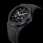 一方、大きくイメージを変えているのはケース周りのデザインです。ケースサイズは40mm径・10mm厚とコンパクトですが、ベゼル側面をケースからくっきりと立ちあがらせたデザインはかなりスポーティ。