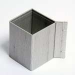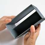 平らな紙板の両端を両手で持ち、中心に向けて両端を軽く押すと、中央が膨らんで四辺が現れ、あっという間に四角形に。内側に隠れていた底板を指で軽く下ろし、底辺の凸部に固定すれば、収納箱ができあがります。また、折りたたむときには、底板を軽くあげて四辺を押しつぶすだけでOK!