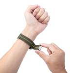 フックを留め金に差し込む形で装着し、手首まわり約130~200mmに対応し、フックを留め金に差し込む形で装着。手首に直接巻いても、またシャツやアウターの上から巻いてもスムーズに長さ調整が行えます。また、バンドが輪のように繋がっているため、Apple Watchを誤って落下させるリスクが軽減されています。