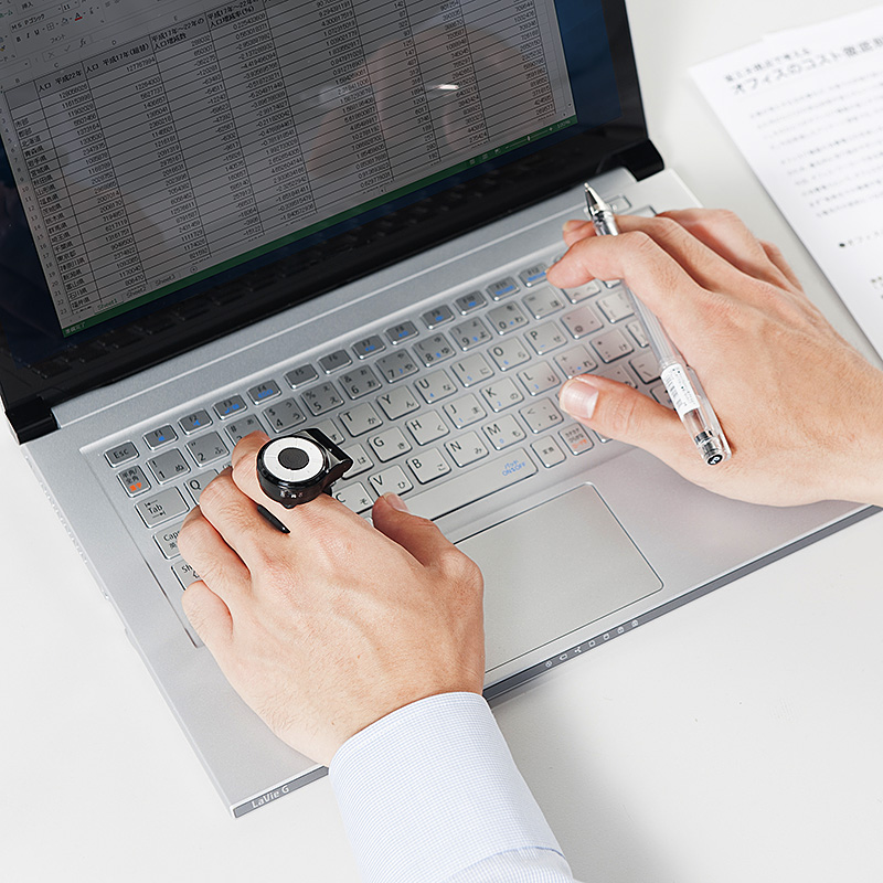 サンワダイレクトから発売されている「リングマウス2」は、指輪のように指にはめて使うことのできるワイヤレスマウス。片手の親指一本で操作できるうえに、装着したままほかの作業ができるから、実に便利。これなら、リングマウスをつけたままスマホを触ったりすることもできます。