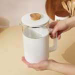 カラーはホワイトとブラックの2色展開。容量は500mlだから、カップ2杯分くらいのコーヒーや紅茶が楽しめます。直線と曲線、そして木目が織りなすやわらかなデザインは、使うたびにホッとひと息つけそう。日々の暮らしに小さなぬくもりを運んでくれます。