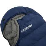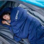 寝袋の機能の中で一番大きな役割を持つ中綿は、羽毛とポリエステル綿のハイブリッドで、表側が高品質なポリエステルと750FPの高品質ダウンをたっぷり300g使用。裏側には水に強いポリエステル綿を使用し、結露や雨にも強くふわふわで暖か。表面生地は耐久撥水加工が施された、丈夫な裏地付きの20Dナイロンを採用し、肌に優しく最高の手触りを実現しています。
