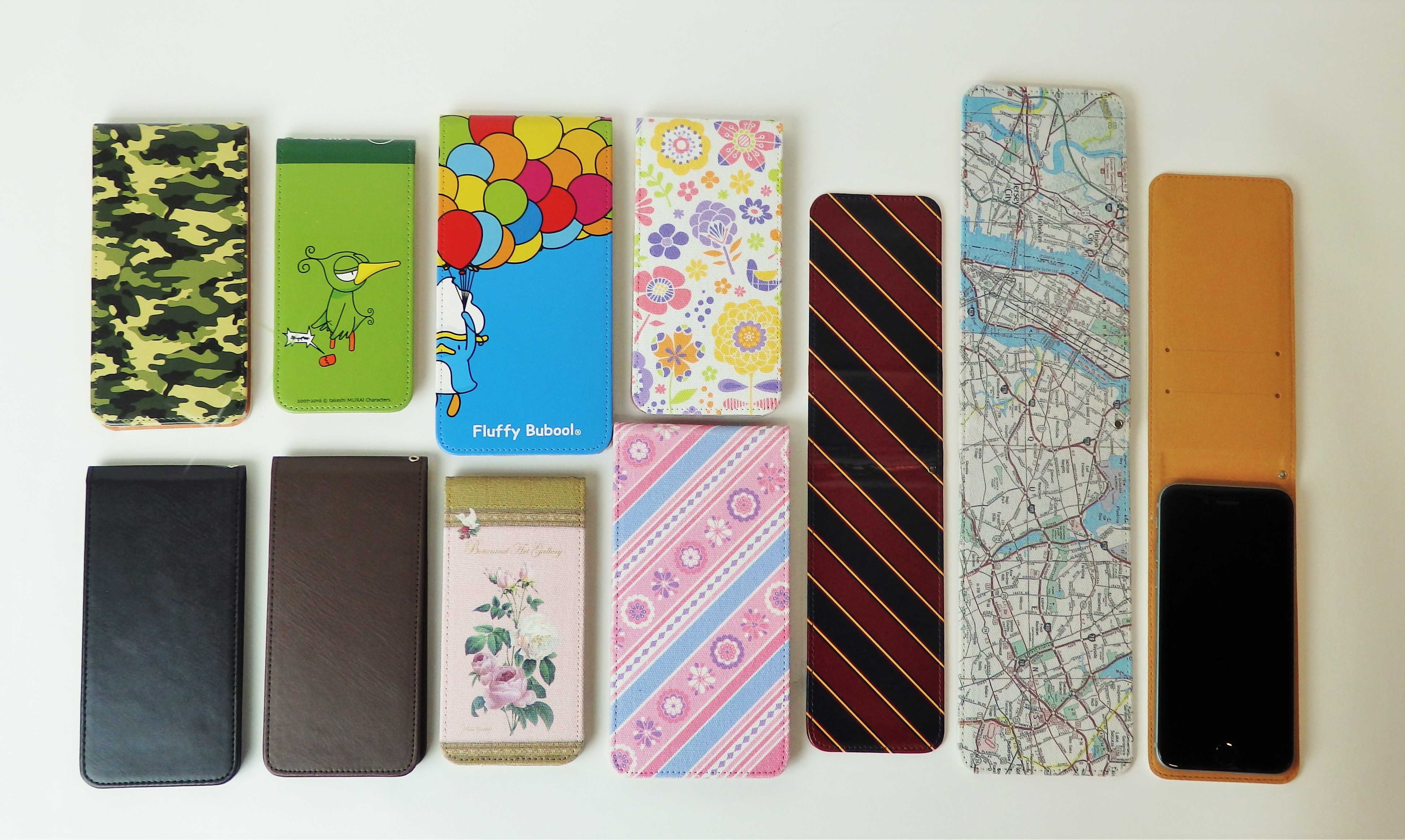 サイズは3種類。 Sは画面サイズ4.5インチ以内、Mは画面サイズ5インチ以内、Lは5.7インチ以内のスマホに装着可能。Necktie StripeやWoodland patternなど柄はおしゃれな10タイプが第一弾として、6月下旬発売開始です。