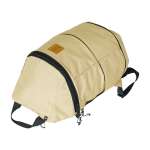 もちろん、単なるユニークさだけを狙ったアイテムではありません。素材には、外側に強度の高い1000Dポリエステル、内側に軽くて裂けにくい210Dのリップストップポリエステル生地を採用しており、内側外側ともに撥水、防汚加工を施しているので、完全防水ではないものの、小雨や汚れを気にせずにガンガン使えます。