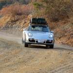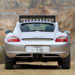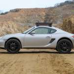 ベース車両はなんと、2シーターの「ポルシェ ケイマン987」。オフロード向けのファットタイヤを装着するなど、スポーツカーでもオフロードを楽しめる仕様になっています。