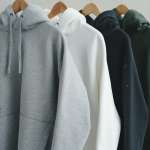 スウェットシャツ、フードの被り心地と立ち上がりの美しさにこだわった「HOODIE」(1万7600円)。