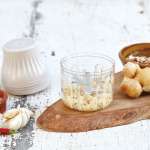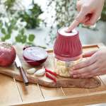ガラス製なのでニオイ移りがしづらく、ニンニクやパクチーなど香りの強い食材のみじん切りに最適。パッキン付きなので液体もOK。ドレッシングやソースをテーブルで仕上げてそのまま料理に盛り付けられるので便利です。