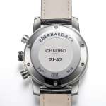 左から30分計、12時間計、24時間計、スモールセコンドと一直線に並ぶ4つのインダイヤルと、12時位置のカレンダーが特徴的な“クロノ4”の新モデルとなるのは「クロノ4 21-42」。