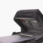止水ファスナーを採用しており、急な雨でもバッグ内に水気が染みにくい構造です。バッグ上部には厚手の手持ちハンドルを備え、背面部にはキャリーバッグに連結できるスプリング入りベルトループを搭載。バッグ自体が自立構造を備えているのも嬉しいポイントといえそうです。