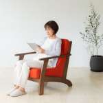 洗練されたカラーも魅力で、ファブリック部分はネイビー(AISORA)、オレンジ(KOHAKU)、グリーン(TATAMI)の3色から、天然木を使ったフレーム部分はライトブラウンとミドルブラウンの2色から選択可能。