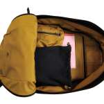 使用している素材は経年変化や丈夫な素材を中心に選ばれており、メイン素材には撥水機能(※防水ではありません)のある、高密度ミリクロスというナイロンポリエステルの合繊素材で、使っていくうちに変わってくる表情が魅力。内装には表生地で使うことの多いキャメル色の素材をあえて裏地に選び、リュックの中に入ってるモノが見やすく、表面のブラックとの対比を楽しむことができます。
