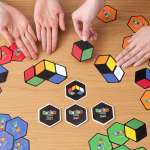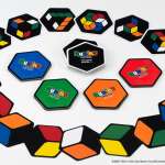 「ルービックマッチ カードゲーム」は、1人から4人まで遊べる対戦型パズルカードゲーム。「お題」の形に合わせて、手持ちのカードを組み合わせて同じ形をつくるゲームです。