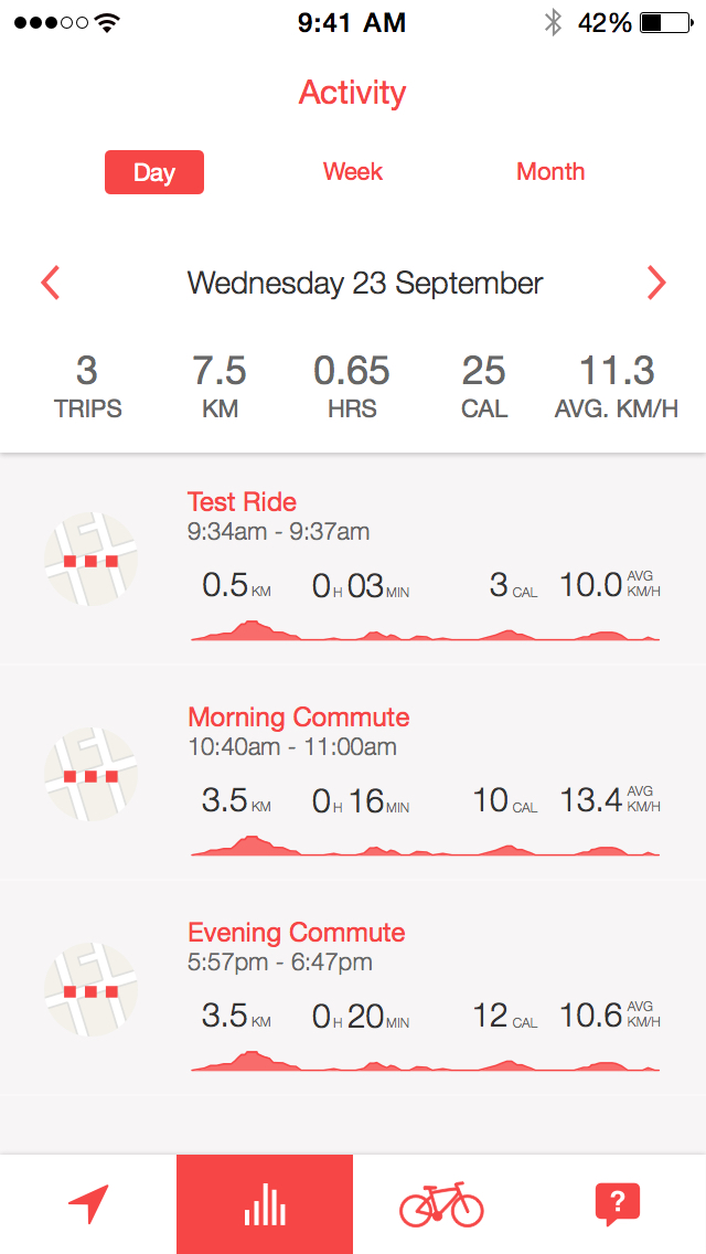 また搭載しているセンサーとスマホが連動し、日々の消費カロリー、移動距離、平均時速などのデータを専用アプリで管理。