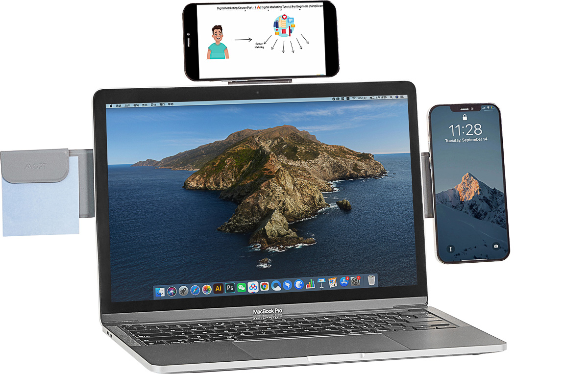 オフィスや自宅以外で、ノートPCを使うなんてことはもはや当たり前。取引先や電車の中、カフェなどで仕事をしている人をよく見かけると思います。しかし、ノートPC同様に、スマホは現代人にとって重要なツール。ノートPCとスマホを同じ目線で操作するには、PCの画面上にスマホを立て掛け、安定感のない状態で作業するしかありません。