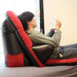 「どこでもエアーソファ・ベッドで楽肘楽座」は、肘掛けと大型背もたれ付きで、スマートフォンやゲーム操作を楽な姿勢でくつろぎながら快適に楽しめる、空気注入式のソファです。