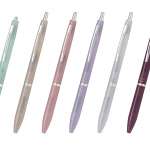 「アクロボール3」は、黒・赤・青の3色ボールペン。グリップには滑りにくい“タイヤパターングリップ”を採用。柔らかく握りやすいラバー素材で、筆圧によるすべりを防ぎ安定感ある筆記を確保します。また、同社試験により10万回挟んでも壊れない試験データのある可動式のリフトクリップを採用。ボディカラーは、パール調を基本としたパールグリーン、パールコーラルピンク、パールホワイトの3色と、数量限定のパールピンク、パールパープル、ネイビーを加えた全6色展開です。