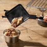 「キャンプラス 折りたためるホットサンドメーカー」は、ハンドル部を左右に折りたたむことで全長40.3cmを25.5cmまでコンパクトにすることができます。サイズは幅約19×全長約40.3×高さ約4.5cm、収納時のサイズは幅約24.5×全長約25.5×高さ約4.5cm。