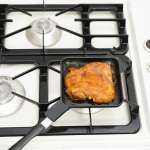 さらに、取り外して2つの簡易フライパンとして使うことも可能。ちょっとした焼き料理ができ、角があるためお皿に移しやすい仕様なのも便利。
