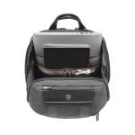バック内部の、ノートPCとタブレットを収納するポケットには、移動時の揺れを抑えるため、伸縮性のある素材を使用しています。