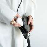 iPhone本体ケースと「マイクロバッグ」はMagSafeの磁力とカラビナで接続する仕様。持ち歩く際は、iPhone本体ケースの下部に設けられたカラビナに、「マイクロバッグ」に装備されたストラップを通して、安心して身につけることができます。