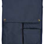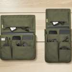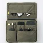 フラップはスナップボタンで閉めることができ、社内移動の際などにはフラップを閉じて単体でも持ち運べるのが便利。モノがたっぷり入るのにスッキリと見えるデザインもポイントです。
