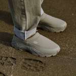 「CAMPI」はこの3モデルの機能を掛け合わせ、汚れやすい甲部分をカバーする構造のサボタイプをベースに、踏んでも履けるかかとのストレッチ素材と、ちょっとしたレジャーシーンにも対応する凹凸のあるアウトソールを加えています。