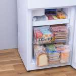 本体サイズは幅595×奥行き600×高さ1890mmと薄型スリム。シンプルな2ドア構成ながらも冷凍室には便利な自動製氷機能をしっかり搭載。
