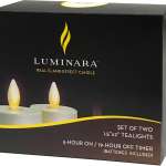 新仕様の「TEALIGHT CANDLE」はコイン型電池を1個セットするだけで、約50時間の使用可能。別売りの「ルミナラ リモコン10ボタンタイプ」(1100円)を使えば、離れた場所からON/OFFの操作もできるので、さらに便利です。