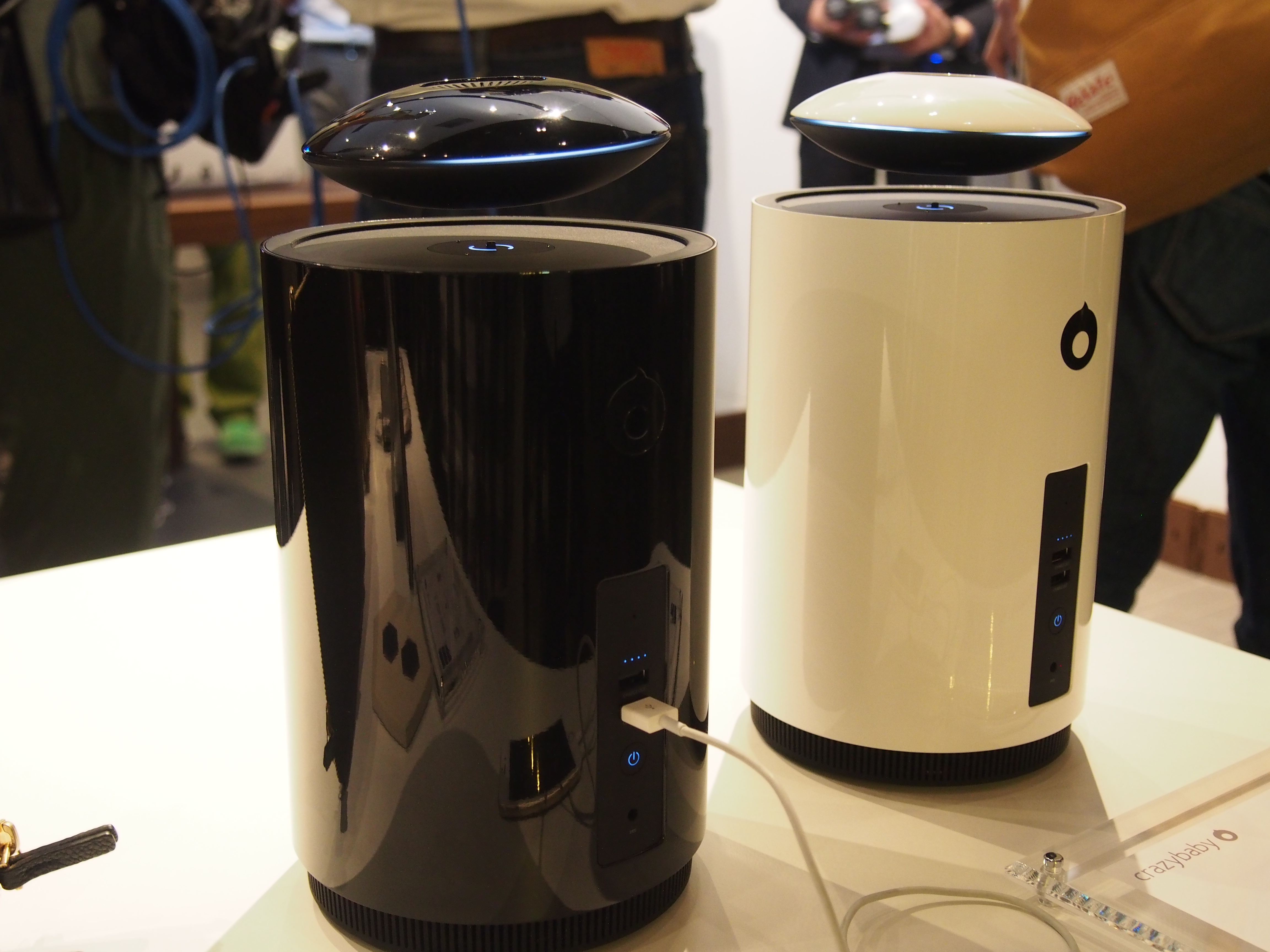 「Mars(マース)空飛ぶスピーカー」は、筒状のウーファーの上にセットすると、磁力によって空中に浮きながら音を出すBluetooth対応のスピーカーです。スピーカー部分にはバッテリーを搭載。IPX7の防水対応なので、お風呂やアウトドアなどさまざまなシーンで利用できます。高さは約20cm、連続再生時間は8時間。iOS、Androidの両方に対応し、2台のデバイスに電力を供給可能です。webサイトの掲載は7月下旬予定。