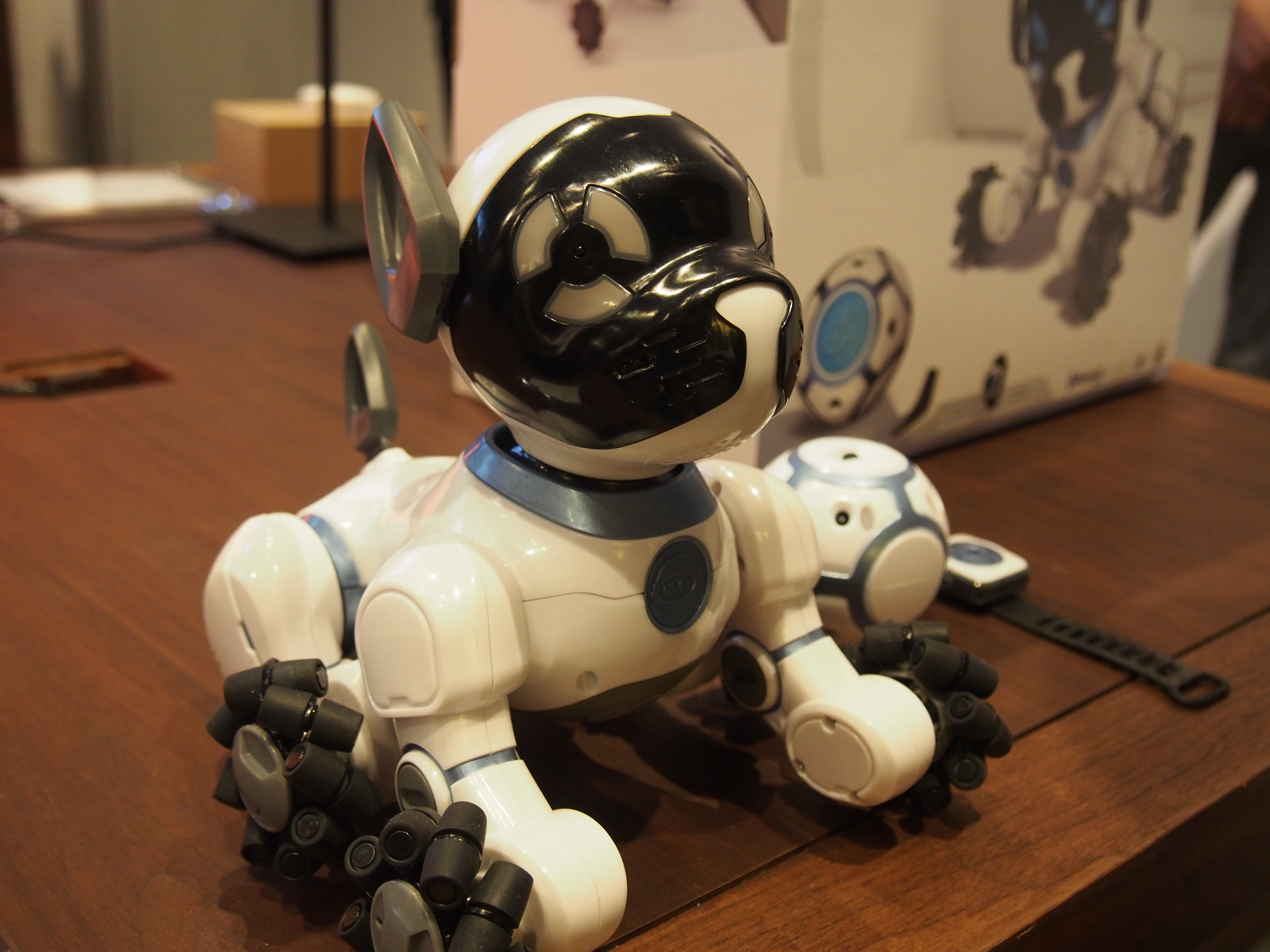 「MeetCHiP(ミートチップ)」は、人間の声やジェスチャーに反応して動き回る子犬型ロボットです。前後左右のあらゆる方向に移動可能な車輪(メカナムホイール)を搭載しています。本体と連携するバンドやボールが付属し、居場所を知らせて近くに呼び寄せたり、ボールを追いかけて遊ぶことができます。音声認識に対応するので、お座りやダンスができ、本物のペットのようにかわいがれるのが魅力。価格は2万9800円、webサイトの掲載は7月下旬の予定。