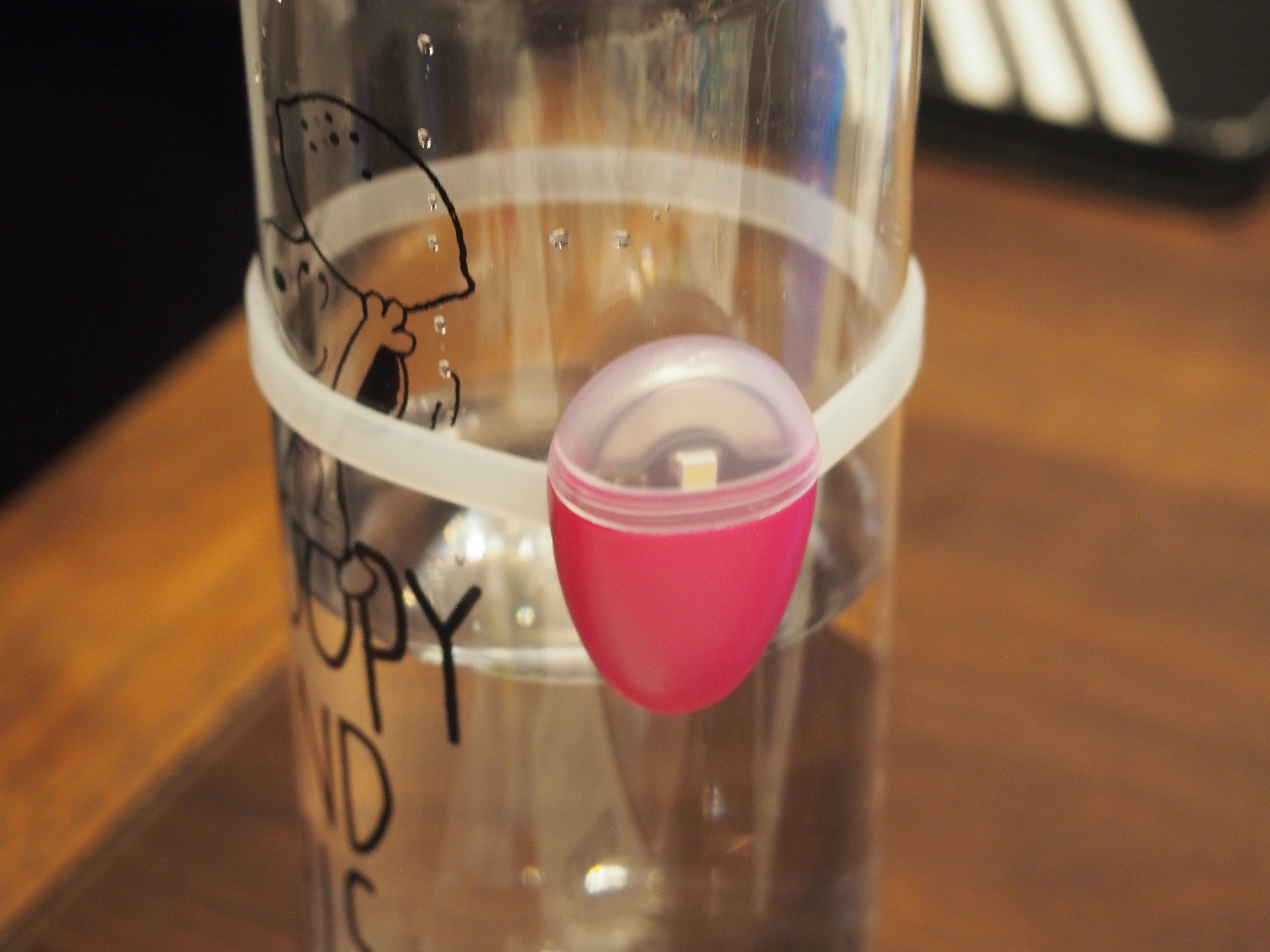 ペットボトルや水筒などの側面に装着することで、水分を補給する適切なタイミングを光で教えてくれる「水分補給デバイス ULLA(ウーラ)」。スイッチやボタンはなく、周囲感知センサーで人が近くに来たことを感知して自動で起動します。webサイトの掲載時期は7月の下旬。