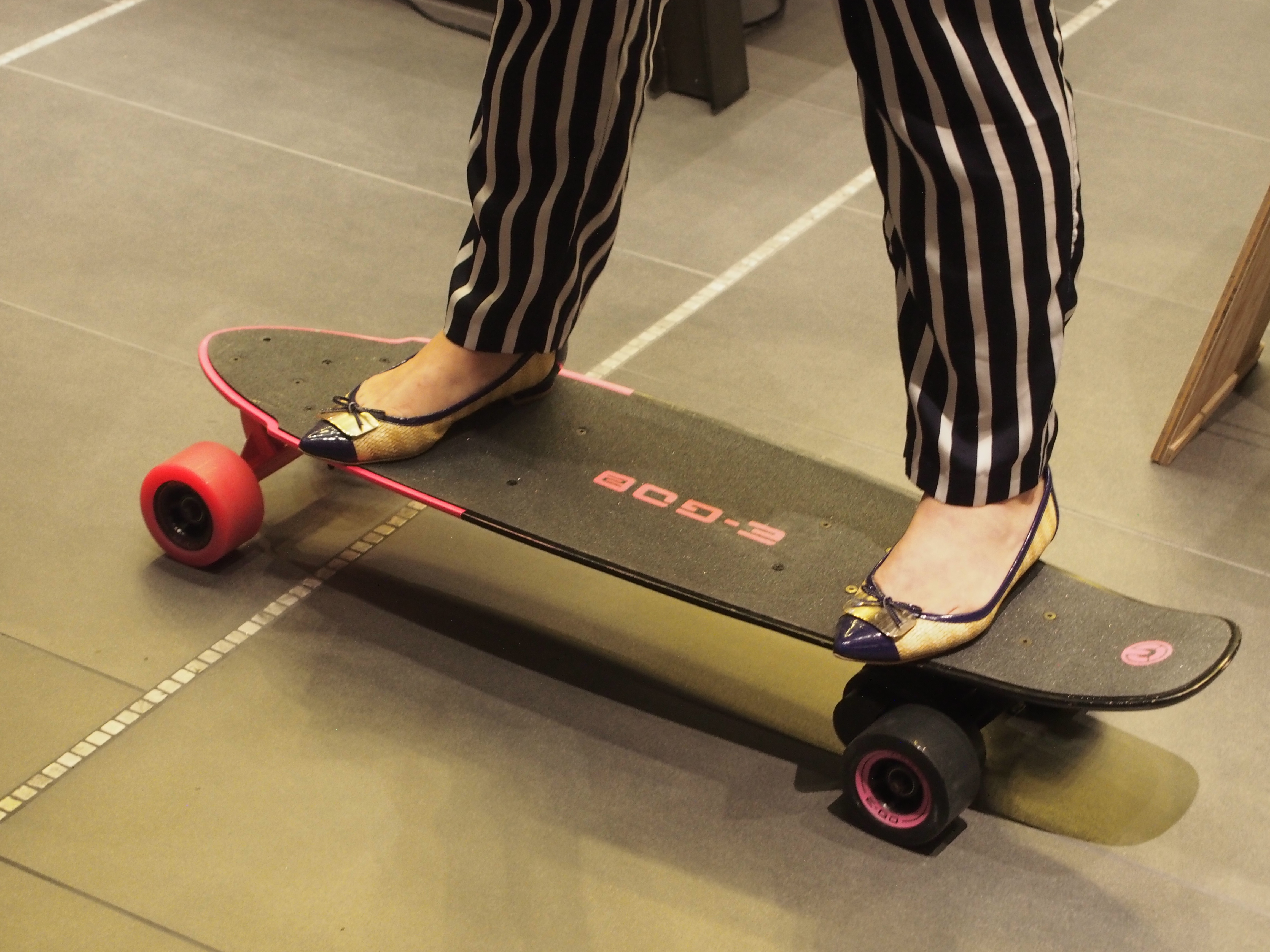 「E-GO2(イーゴーツー)電動スケートボード」は、ドローン技術を使った電動スケートボードです。付属のリモコンやスマホの専用アプリでの操作が可能で、スケートボードに乗りながら速度などを調整できます。1回の充電で約30kmの走行が可能で、最高時速は約20km。webサイトの掲載は7月下旬を予定。