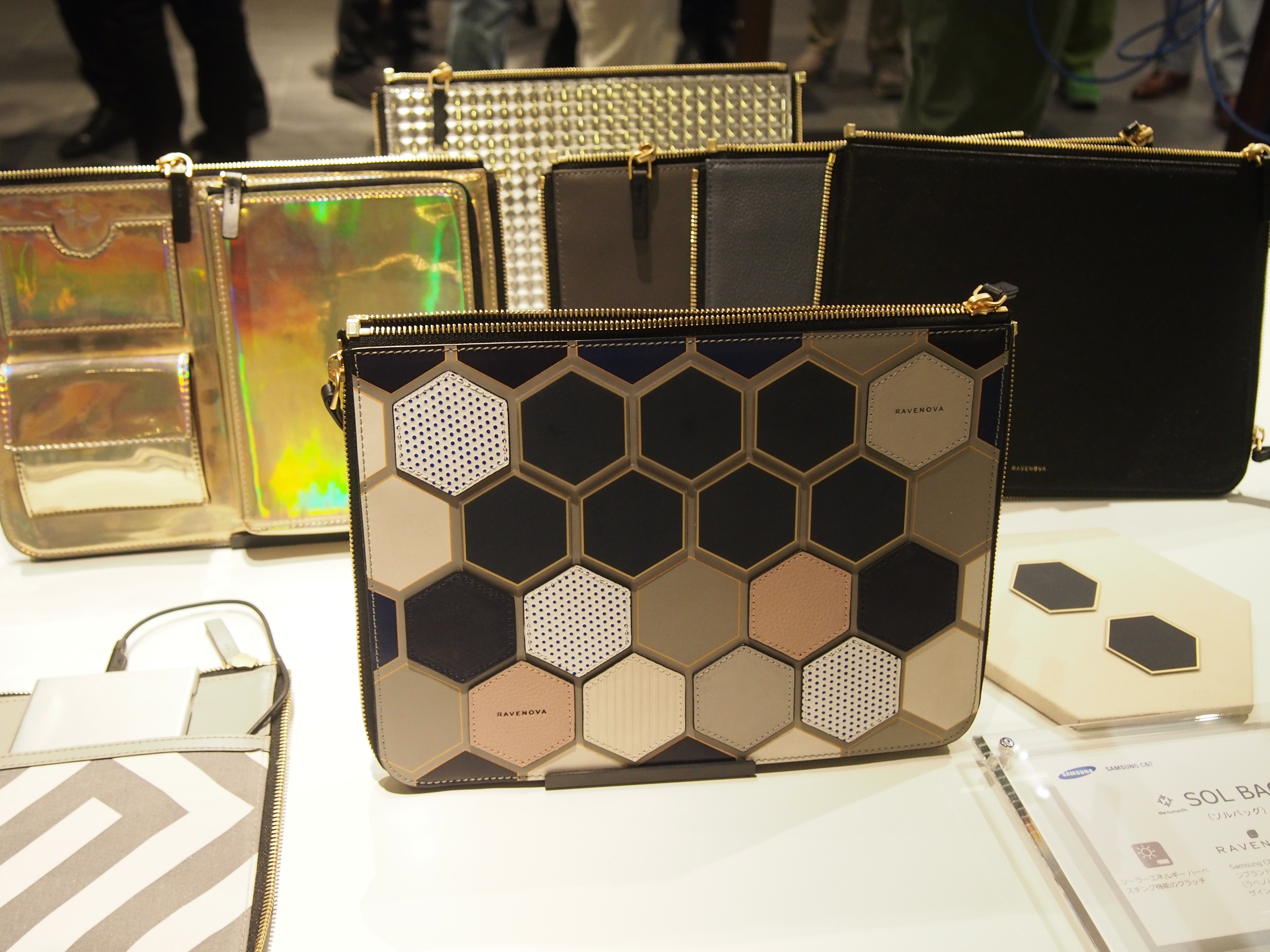 サムスン電子の関連企業Samsung C&Tによる「SOL BAG(ソルバッグ)」は、クラッチバックソーラーパネルを搭載したクラッチバックです。ファッションブランド「RAVENOVA(ラベノバ)」とのコラボによる実現したアイテムで、8時間でGalaxy S6を満充電できる2600mAhの蓄電が可能です。裏面を取り替えることが可能で、デザインの異なる5種類のパーツをラインナップしています。価格は3~4万円を想定しており、webサイトの掲載は7月7日を予定。