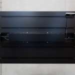 天板のサイズは幅1400×奥行き700mmと余裕のあるサイズで、表面には傷や指紋汚れに強いマットブラックの“メラバイオ高圧メラミン化粧板”を使用。小口に施したウォールナット突板の質感も雰囲気を和らげるアクセントになっていい感じ。