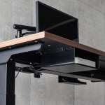 また脚部分には高さ607〜1257mmの間で無段階調整できる電動昇降脚 “FlexiSpot E7”を使用しており、ユーザーの体格や使用するチェアにあわせて自在に調節可能。普段は座りスタイルで作業に集中し、リラックスしてアイデアを練りたいときはスタンディングスタイルなど、仕事内容によって気分を変えたい人にとっては特にうれしい機能です。
