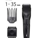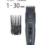「ヘアーカッター TT590A」(予想実勢価格:4400円)は、ショートコーム、35~70mmの長さで仕上げられるロングコーム、生え際の自然な仕上げや髪のボリュームダウンが簡単にできるスキ刈りコームの、アタッチメント3種類が付属。丸刈りからショートスタイル、前髪のちょっとだけ調整まで、さまざまな髪型や仕上げに対応できる家族用タイプです。刈り高さはこちらも本体のダイヤル調整と各アタッチメントとの組み合わせにより、仕上がり時の髪の長さは1~70mmと幅広く調節できます。本体サイズは165×42×奥行38mmで、重さは145g。カラーはダークグレーです。