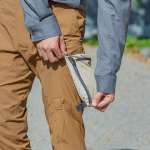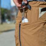 収納機能満載で、とても便利そう。でも、やっぱり気になるのは履き心地。歩きにくかったり、ゴワゴワしていたらイヤですよね。「キャリーカーゴパンツ」は、生地に耐久性と軽量性、そして肌離れの良さをバランスよく兼ね備えた耐久撥水タスランナイロンを使用。街中はもちろん、アウトドアでも快適に過ごせます。