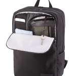 フロント部分上下に2つのポケットを配置し、下部ポケットは左右いずれからもアクセスできる仕様に。PCは専用コンパートメントにすっきり収納できます。