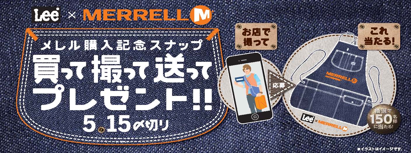 実はこれ、メレルのシューズを購入し、商品と一緒に撮影した写真をキャンペーンサイトに応募すると、抽選で150人に当たる「Lee×MERRELL特製ワークエプロン」なのだ。