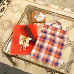 「フルーツMIXツイード」(9900円)には明治時代から岩手県花巻市で製造されている伝統的な生地"ホームスパン”を採用。パッションピンク、イエロー、ライムグリーンなどに1本ずつ染め上げられた糸を、職人が格子状に織り上げ、上品さとカラフルさを併せ持っている点が特徴のツイード生地です。