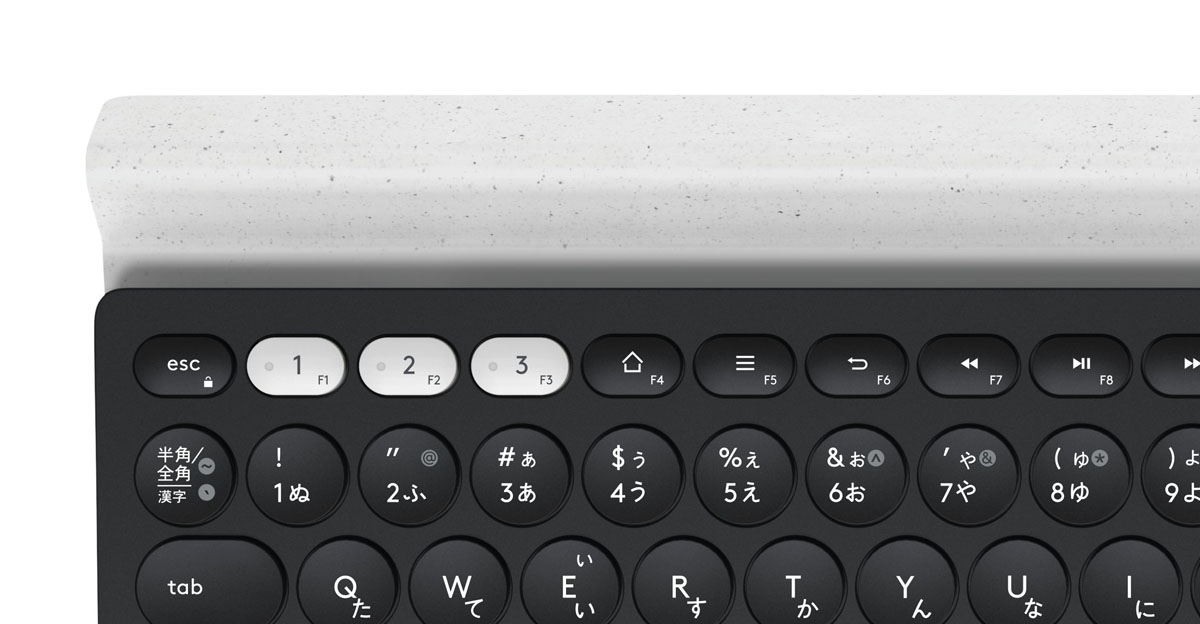 複数と接続というといかにも難しそうだが、操作はいたって簡単。一度各端末と接続してしまえば、あとはキーボード左上に配置された白いEasy-Switchボタンを押すだけ。これで操作する端末を切り替えられる。
