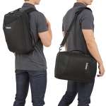 「Thule Accent Convertible Backpack(スーリー アクセント コンバーティブル バックパック)」(1万7600円)は、バックパックとブリーフケースの2WAYで使えるコンバーティブルタイプ。こちらもファブリックには撥水加工を施した100%リサイクルの1680Dポリエステル素材(カラーはブラック)を、裏地はブルーカラーの生地を採用。