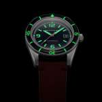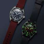 ダイビングエンジニアの先駆者であるヘンリー・フルース氏が活躍した19世紀後半の時代からインスピレーションを受けて作られた「FLEUSS」は、防水加工を施したカーフベルト仕様とステンレススチールベルト仕様の2種類。