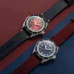 カーフベルトはレッドの文字盤にブラックのベルトを組み合わせた「SP-5055-07」と、ブルーの文字盤にレッドのベルトの「SP-5055-08」。