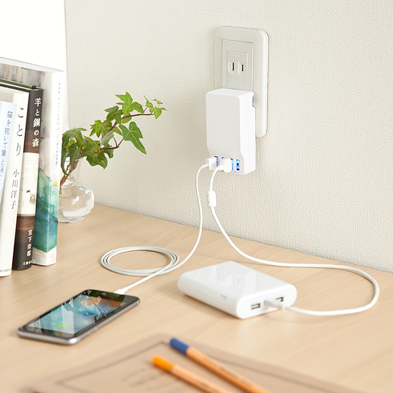 本製品は、2ポート合わせて2Aまでが2組=合計4ポートとなっているので、2Aほど必要となるタブレット端末などの充電を行う場合は、対になるもう一方の充電ポートの使用は控えた方がよいだろう。